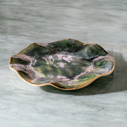In the heart of a blooming orchid, where petals cradle the morning light like hidden jewels, I discovered the inspiration for the Cattleya 009, my original dining plate that transforms every meal into a quiet celebration of nature's grace. Hand-formed in my studio with waves of organic edges that echo the gentle ruffles of a flower, it shimmers in deep forest greens laced with iridescent purples and soft pinks, finished with rustic golden rims that whisper of sunlit earth. Perfect for serving your favorite dishes or as a standalone piece of art on your table, it invites serenity into your gatherings, evoking the renewal that comes from sharing stories over simple joys. More than a plate, it's a poetic vessel for the soul, reminding us that beauty in everyday moments can uplift and inspire, blending functionality with the tranquil artistry that speaks directly to the heart.